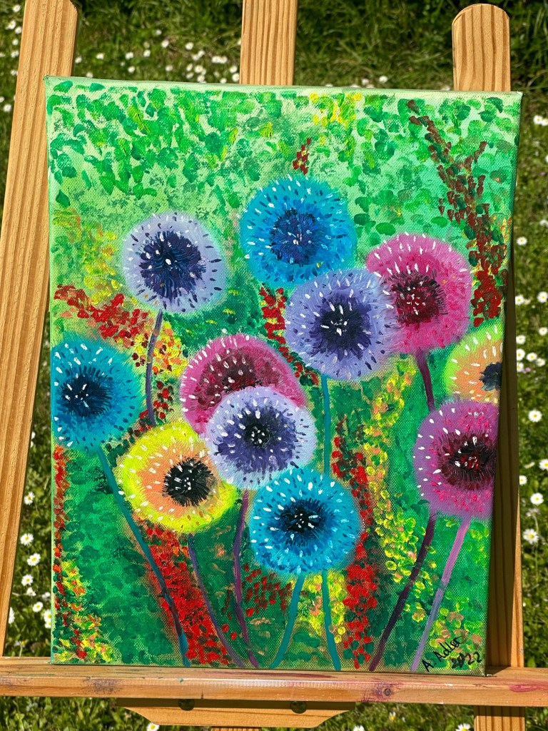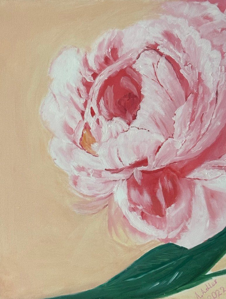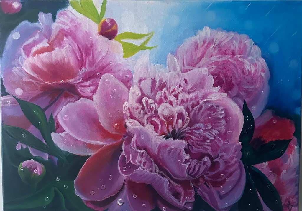 „Gute Laune“ 40x30x1,5 cm. Acrylfarben. Leinwand gespannt . 2022. 60€„sonnige Laune „ Gemalt nach MK O.Bazanova, 40x40x1,5 cm, Ölfarben , Leinwand gespannt. 2023, Preis 150 Euro. Das Bild ist nicht mehr verfügbar, kann aber nach Bestellung gemalt werden.„Pfingstrose“ Gemalt nach MK O.Bazanova, 50x40x1,5 cm, Ölfarben , Leinwand gespannt. 2023, 100€„Pfingstrosen im Regen», Rosa Pfingstrosen erstrahlen in dieser Komposition, bedeckt mit zarten Regentropfen. Die Farben und Formen der Blüten vermitteln eine ruhige, frische Atmosphäre. Das Bild, entstanden nach einem Webinar von Olga Bazanova, gewann den zweiten Platz beim Wettbewerb Gold Time Talent in London. Größe 50×70 cm, hochwertigen Ölfarben, Leinwand gespannt. 2023 Alexandra Adler Preis 200 Euro