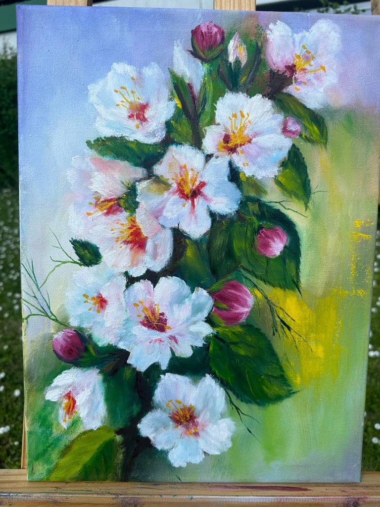 „Blutenharmonie“ 100x80x1,5 cm, gemalt nach MK O.Bazanova, Ölfarben, Leinwand gespannt. 2024. Preis 800€ . Das Bild ist nicht mehr verfügbar, kann aber nach Bestellung gemalt werden.