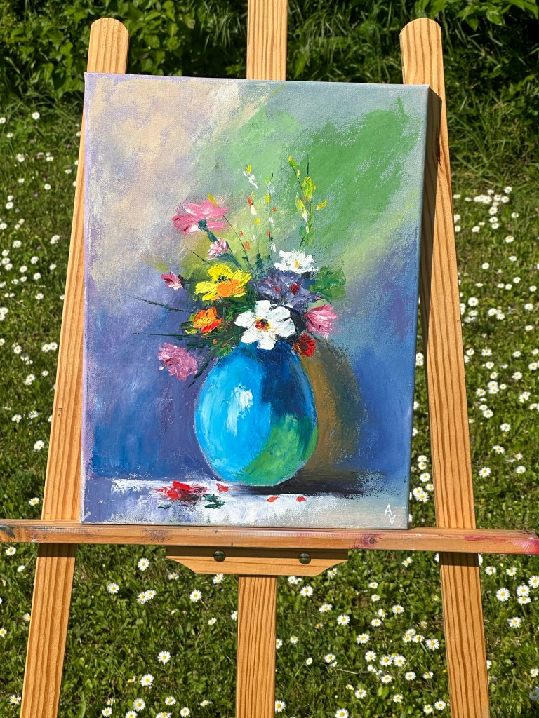 “Stille Blutenpracht” , frisch gemalt nach MK von O.Bazanova, 40x50x4,5 cm. Ölfarben, Leinwand gespannt. 2024. Preis: 250 Euro“Feldblumen „ 40x30x 1,5 cm, Ölfarben, Leinwand gespannt, gemalt mit Malmesser, 2024 . 100 Euro„Zärtlichkeit “ 40×40 cm, Acryl und Ölfarben, Leinwand gespannt. 2024. 50 Euro“Kirschblüte” , 30×20 cm, Acryl und Ölfarben, Leinwand gespannt. 2024„Pfirsichblüte“ gemalt nach MK O.Bazanova, 40x30x1,5 cm, Ölfarben, Leinwand gespannt. 2024 Preis 112 Euro„Sonnenlächeln“ frisch gemalt mit Ölfarben,auf runden Leinwand gespannt . O 30 cm. 2024 Preis 87 Euro„Mohnblumen“ 90×60 cm, gemalt nach MK O. Bazanova , Ölfarben , Leinwand gespannt. 2024 Preis 278 Euro “Löwenzahn“ 30x20x1,5 cm Ölfarben, Leinwand gespannt. 2024 Preis 60 Euro. Das Bild ist nicht mehr verfügbar, kann aber nach Bestellung gemalt werden.„Apfelblüten „ gemalt mit Malmesser. 40x30x1,5 cm. Ölfarben, Leinwand gespannt. 2024 Preis 88 Euro„Pink Poppy“ 80×60 cm, gemalt nach MK O. Bazanova, Ölfarben, Leinwand gespannt. 2024 Preis 298 Ruro