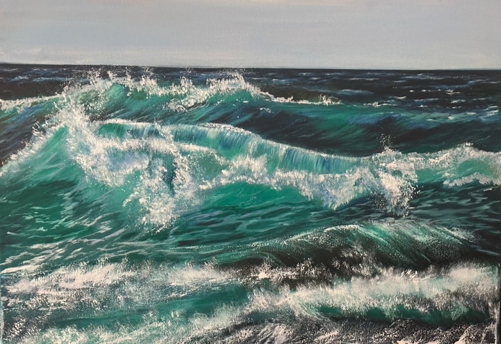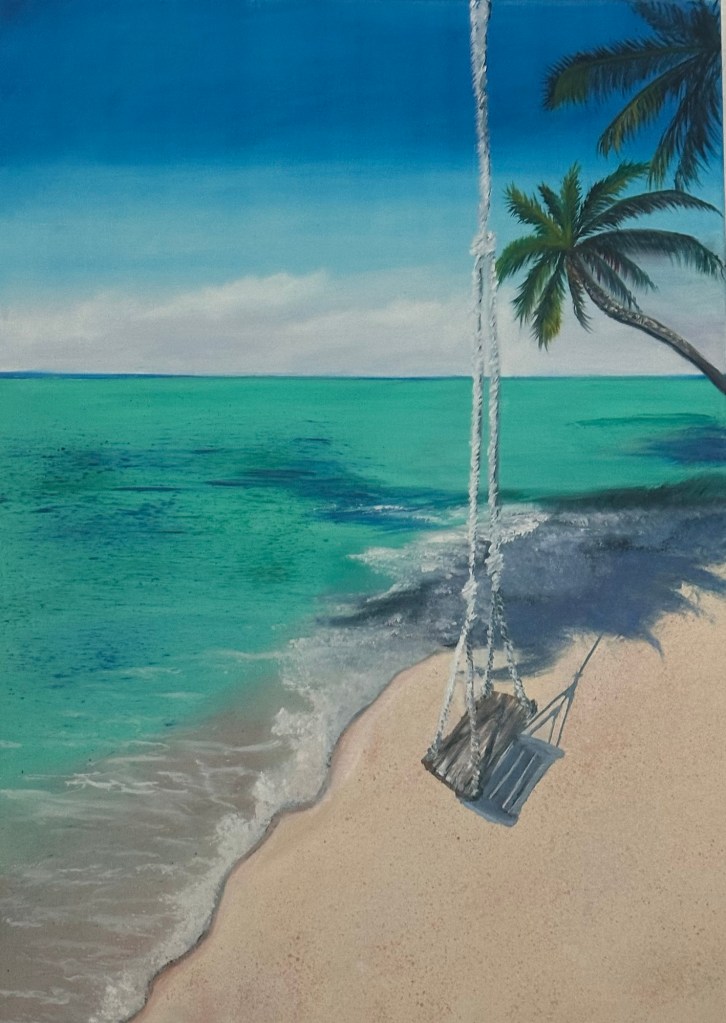 „Im Meer“ Gemalt nach MK O.Bazanova, 40x40x1,5 cm, Ölfarben , Leinwand gespannt. 2024. Preis 150 Euro. Das Bild ist nicht mehr verfügbar, kann aber nach Bestellung gemalt werden.