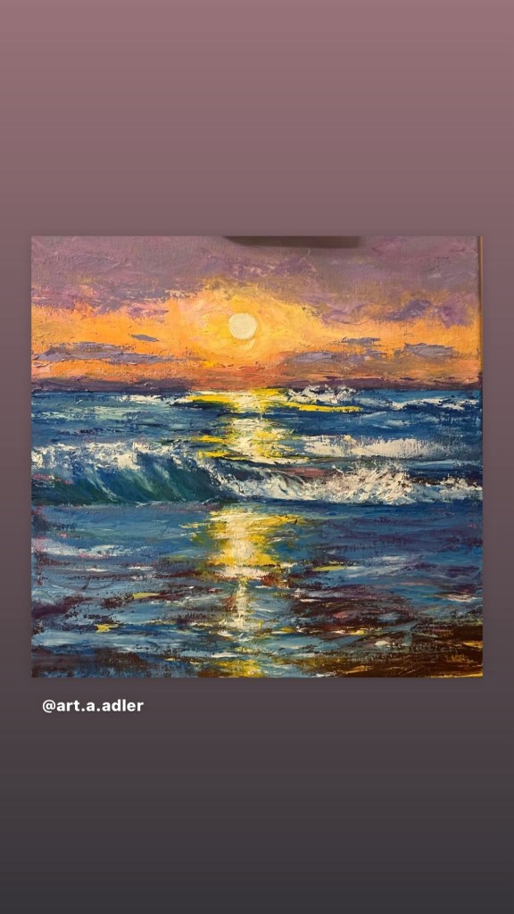 „Die Welle” 40x40x1,5 cm, Ölfarben, Leinwand gespannt, 2022.Preis 120 Euro. Das Bild ist nicht mehr verfügbar, kann aber nach Bestellung gemalt werden.„Sehnsucht nach Urlaub„ Gemalt nach MK O.Bazanova, 70x50x1,5 cm, Ölfarben , Leinwand gespannt. 2024, 150 Euro„ Puls des Ozeans“ Gemalt nach MK O.Bazanova, 70x50x1,5 cm, Ölfarben , Leinwand gespannt. 2024, 150 Euro„Ruhige Gelassenheit“ gemalt nach MK von O.Bazanova, 50x70x1,5, Ölfarben, Leinwand gespannt, 2023. Alexandra Adler. Dieses Bild hat bereits ein neues Zuhause gefunden, kann aber auf Bestellung gerne nochmals angefertigt werden.Sonnenuntergang “ 40×40 cm gemalt mit Malmesser und hochwertigen Ölfarben, Leinwand gespannt. 2024 Preis 120 Euro„Positive Energie“ 70×50 cm, hochwertige Ölfarben, Leinwand gespannt. 2024. Alexandra Adler. Preis 150 Euro Dieses Gemälde ist ein einzigartiges Werk, das nach einem Webinar von Olga Bazanova entstanden ist und mit vielen Details von mir. Die fesselnde Meereslandschaft vermittelt ein Gefühl von Ruhe und Energie. In den klaren Gewässern tummeln sich acht goldene Fische und ein schwarzer Fisch, die in der Feng-Shui-Lehre eine besondere Bedeutung haben. Die acht goldenen Fische symbolisieren Unendlichkeit, Wohlstand und Fülle, während der eine schwarze Fisch als Schutz dient, indem er negative Energien absorbiert. Dieses Werk passt perfekt in den südöstlichen Bereich Ihres Hauses oder Büros, wo es positive finanzielle Energie anziehen und Harmonie sowie Wohlstand fördern wird. Das Gemälde ist nicht nur eine Bereicherung für Ihre Inneneinrichtung, sondern auch ein kraftvolles Symbol für Wohlstand und Erfolg. Wenn dieses Kunstwerk Ihr Interesse geweckt hat, ist es zum Verkauf erhältlich. Kontaktieren Sie mich gerne für weitere Informationen oder um ein ähnliches Werk in Auftrag zu geben.🌊 So sehr habe ich mich nach dem Meer gesehnt, dass ich es unbedingt auf Leinwand bringen wollte. Hier ist meine erste Malerei in diesem Jahr: eine mediterrane Landschaft voller Wärme und Urlaubsstimmung. Tauchen Sie ein in die Atmosphäre des Südens: Dieses handgemalte Acrylgemälde (40 x 30 cm) zeigt ein charmantes Haus am Meer, umrahmt von einem leuchtenden Orangenbaum. Perfekt für alle, die von Sonne, Sommer und Entspannung träumen! 🎨 Mit viel Liebe zum Detail geschaffen und inspiriert durch einen MK von Vitaly Antipin. 2025. Preis 120 Euro