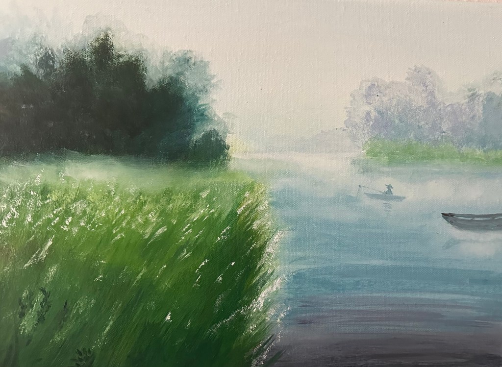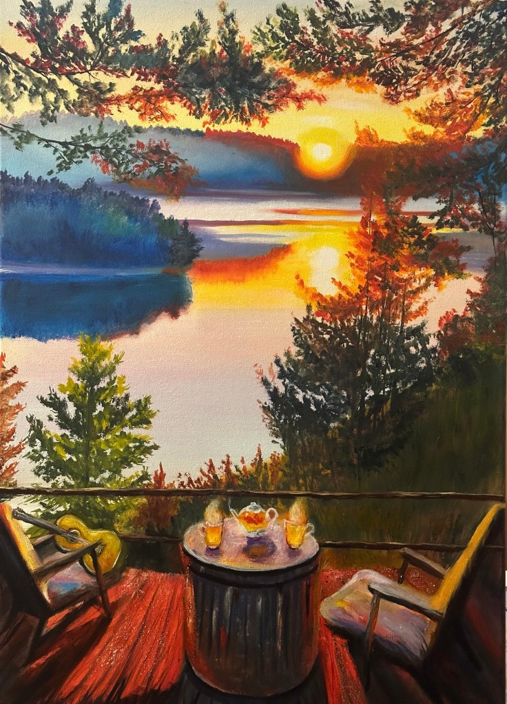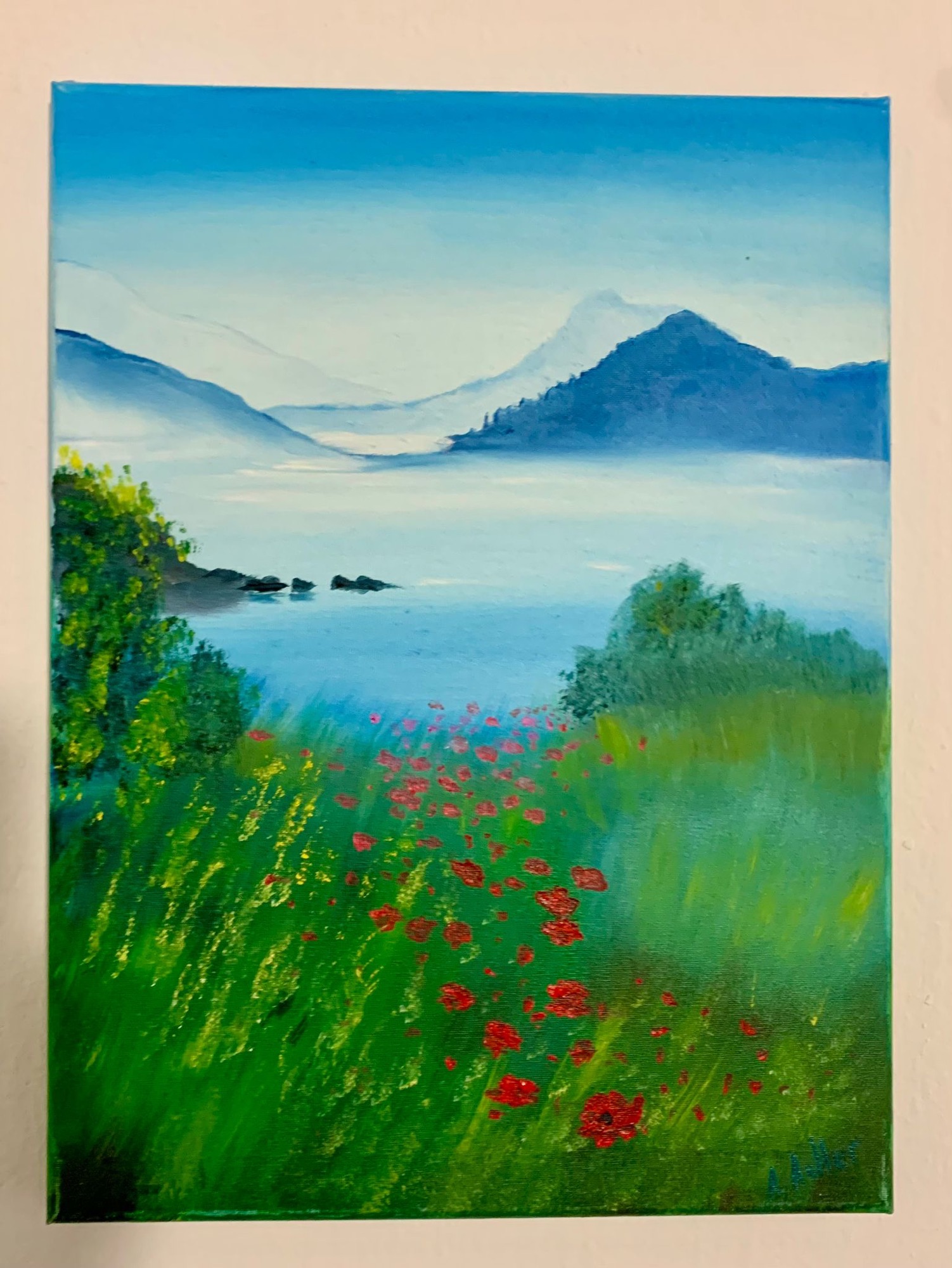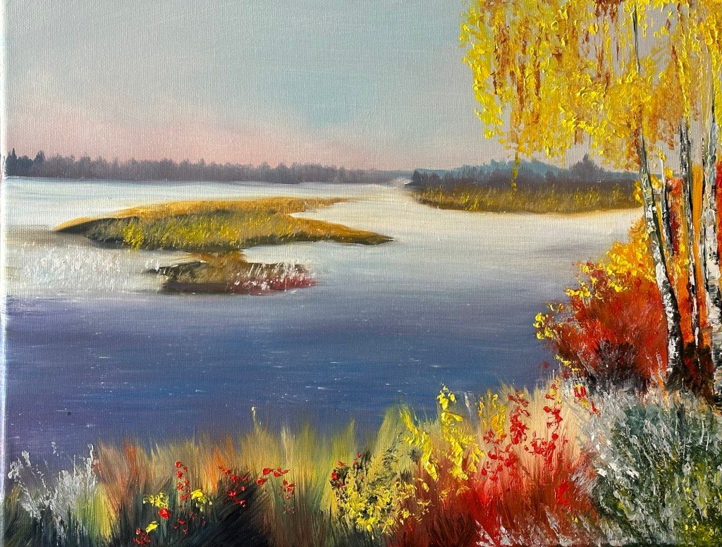 “Entspannung “ Gemalt nach MK O.Bazanova, 40x30x1,5 cm, Ölfarben , Leinwand gespannt. 2023, Preis 120 Euro. Das Bild ist nicht mehr verfügbar, kann aber nach Bestellung gemalt werden.